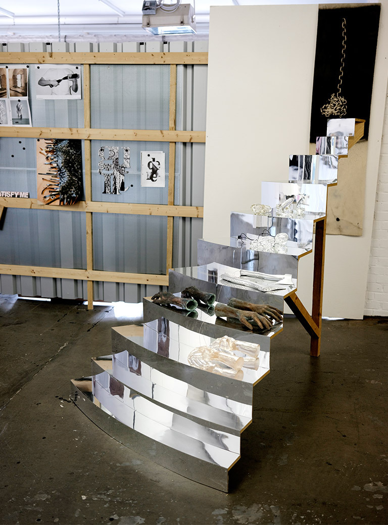 I am interested in building a discourse about issues and to provoke reactions. The title of the exhibition I Cannot Hide My Anger for example is a quote from the American writer and feminist Audre Lorde that goes even further. I think it fits today’s gender, feminism, and LGBT as well as political issues. The exhibition can be seen in Austria. We are living more and more in a Europe that is oriented toward the political right. I have strongly concentrated on the architecture and almost “reacted”, because I know the building so well. I wanted to make the center of the surface inaccessible and at the same time make the periphery the space in which everything takes place. The center is now excluded. This has certainly a very strong performative aspect, this large installation. You walk along all four walls of the installation trying to find the entrance. One is always looking for the surprise or expects that something is going to happen. But while one is looking, one is already there.