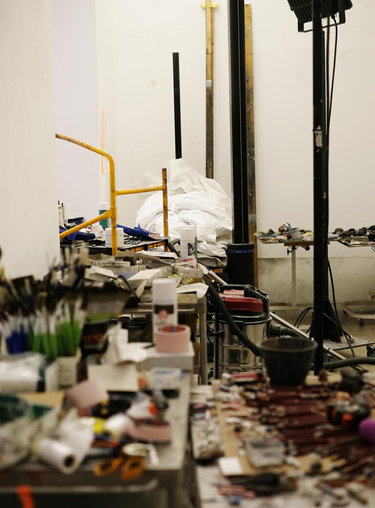 M: Ideally, it’s mixed and we combine our studio shots with found footage, because certain things are almost impossible to recreate. We then make one or two sketches on the computer and project these rough outlines onto the canvas. And then we start painting together, meaning one starts and the other joins in. There are four or five phases and we take turns. So we tend to work in shifts.