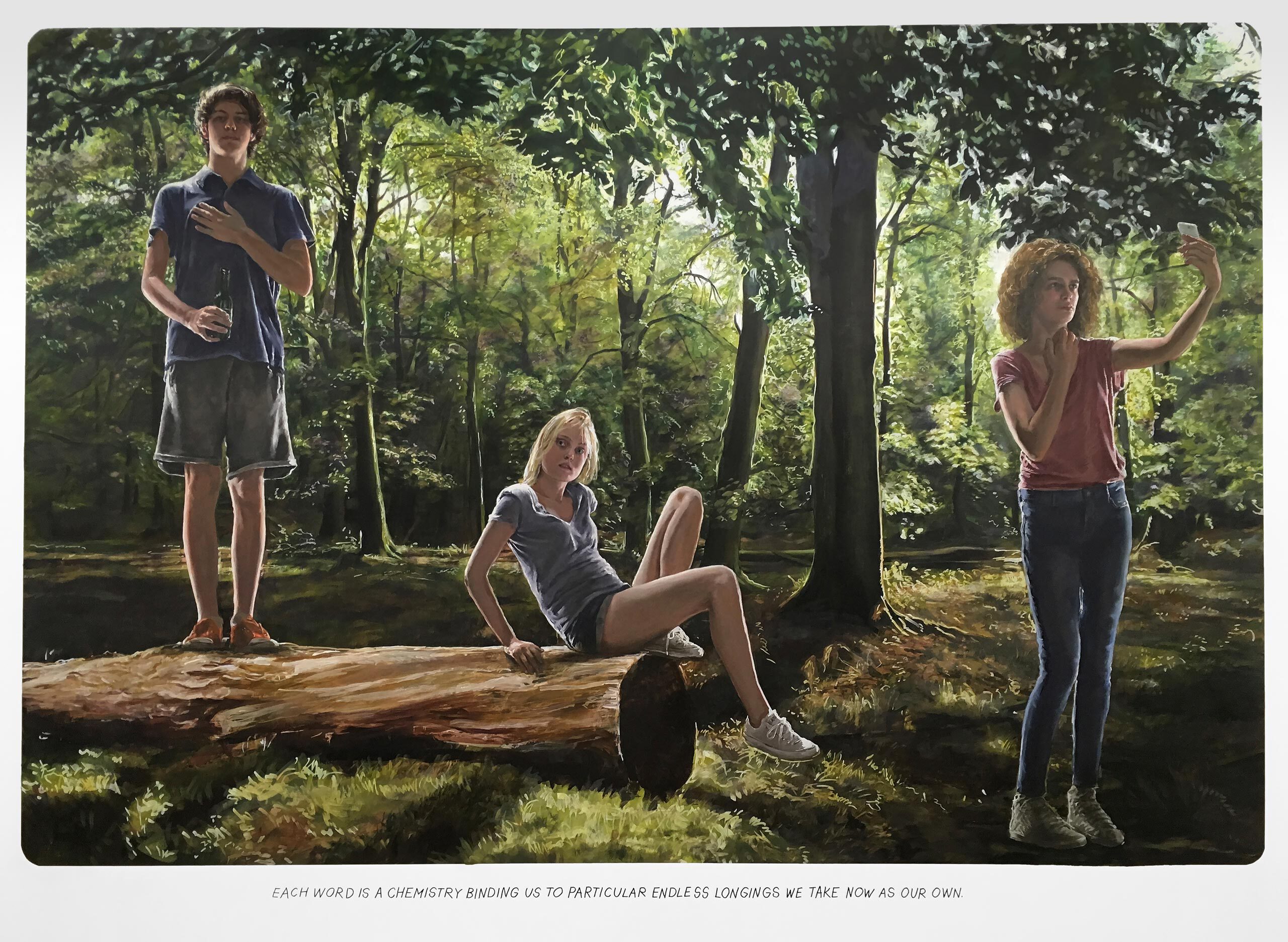 A: That is definitely critical. We reflect our collective visual self-perception. But this supposed similitude is only one level, on the other hand there is something that painting can do, it evokes a break and brings a depth. That’s why we use painting and not photography. So the figures radiate a melancholy and forlornness. The principle of ambiguity is important here. What we’ve been trying to portray since the earliest times is the feeling that the whole society is becoming more infantile. Our whole culture is becoming an adolescent culture. It’s interesting how people on Instagram are jumping in front of the camera like little kids and doing stupid things ... We live in a society of perpetual adolescents.