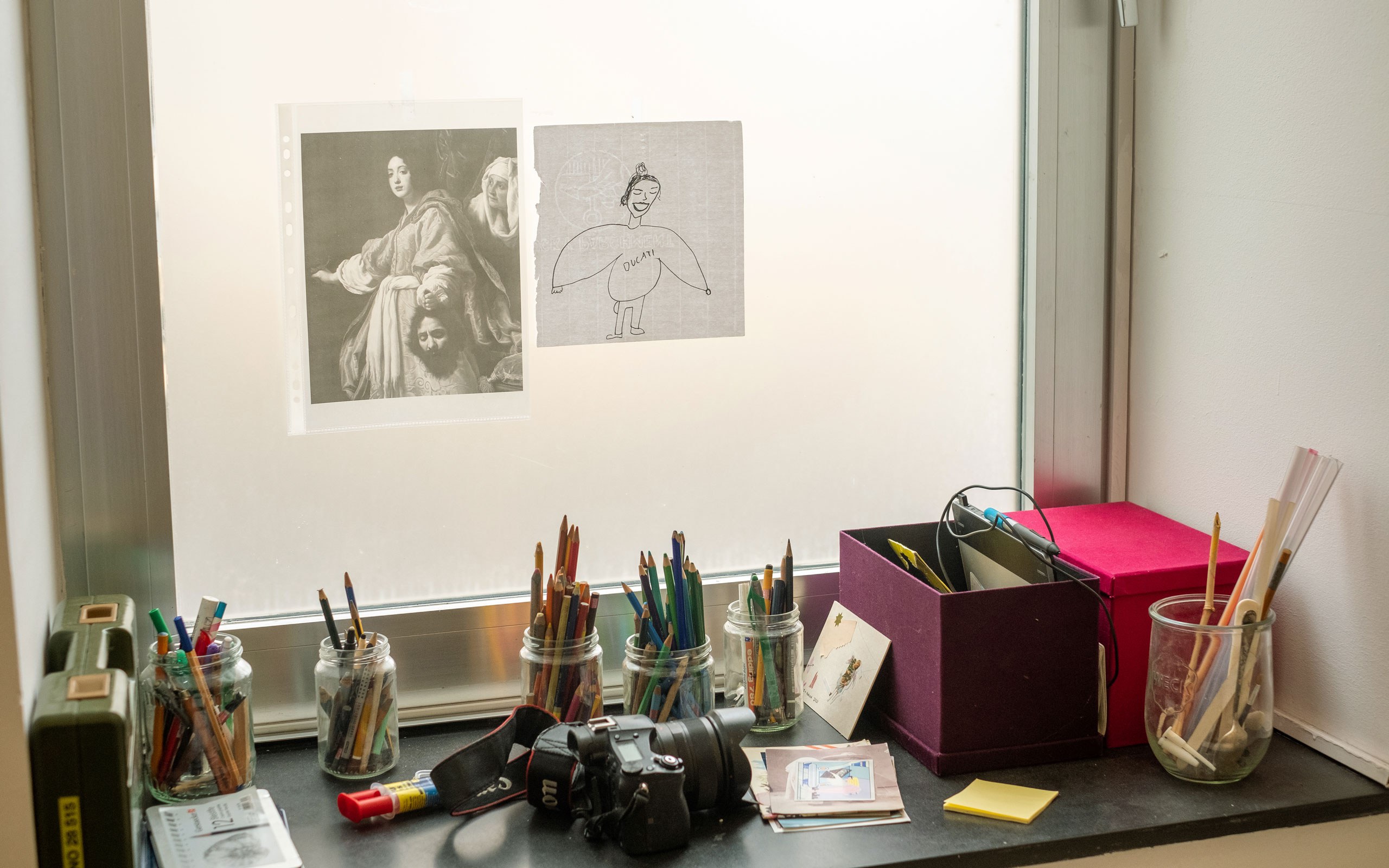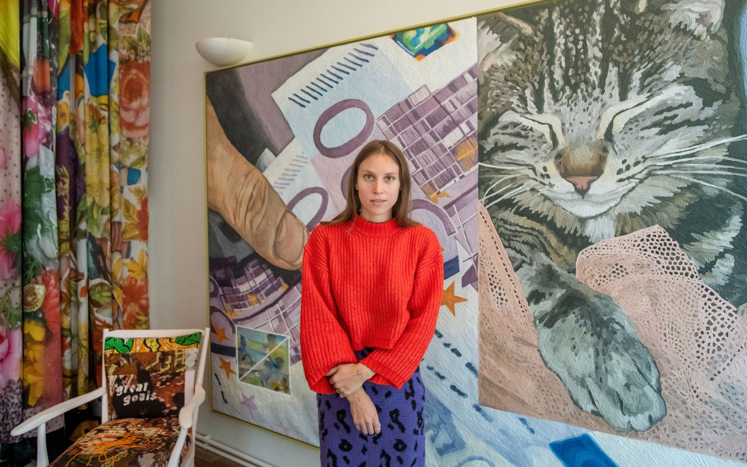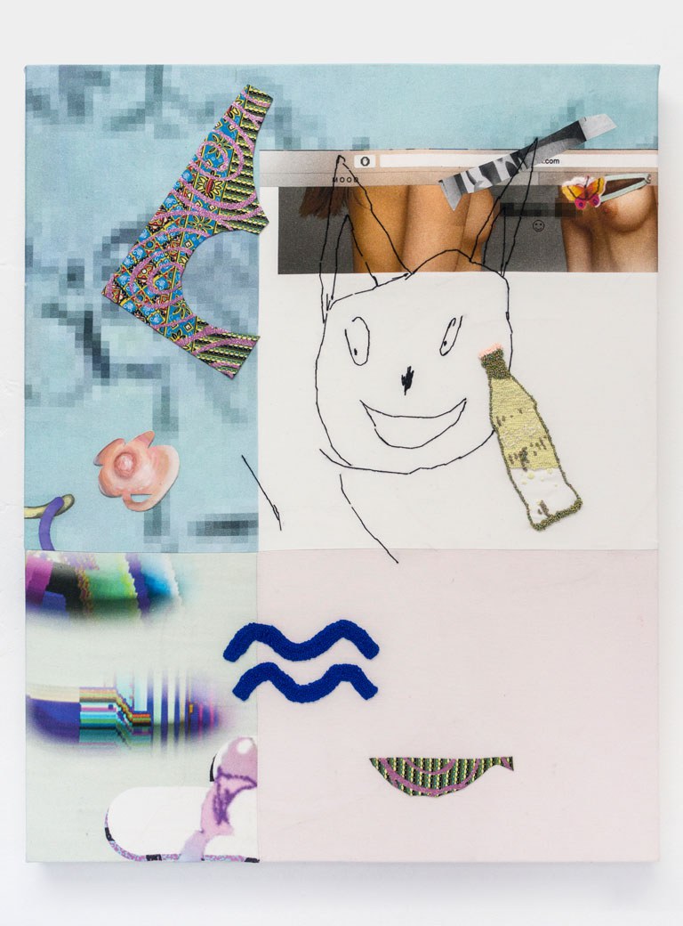 This constant searching results automatically in a flood of images; one is already completely overloaded when moving around in the digital world. In addition, there’s a juxtaposition, a discrepancy between the mundane and the super-private; this is very much reflected in digital media, from news from all over the world to personalised ads. Or the fact that all tabs on your computer are always open and overlap and exist simultaneously ... I’m fascinated by all of this, and it appears repeatedly in my works, a kind of layering or superimposition, but there’s also a juxtaposition or a superimposition of things. And the attempt to make this tangible through bringing it into the material and thus making it visible, along with the question of how it can all exist at the same time, including all of these themes.