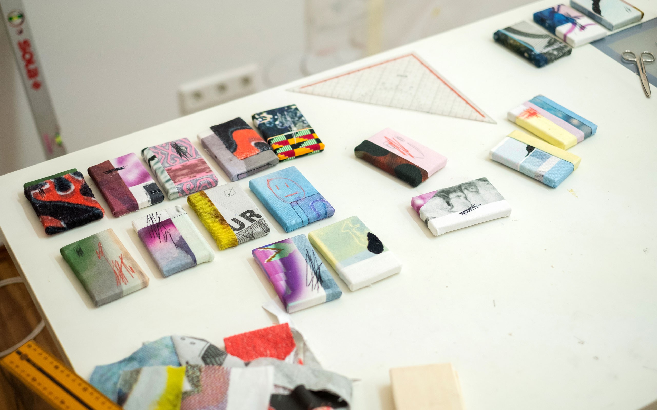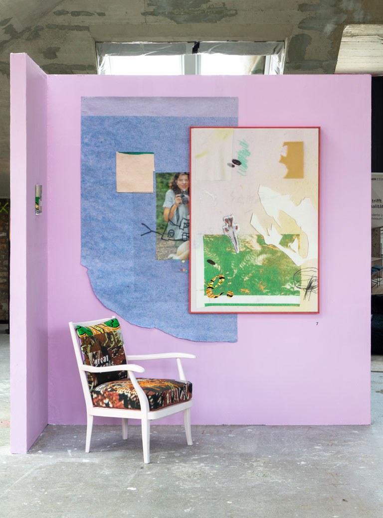 I produce mixed-media work; I come from a classical painting background, but I actually like to mix abstract and figurative elements. I’m also very much interested in mixing materials when creating the images. And what I’m also interested in are installation situations, in other words really using an entire room, working with the floor and the wall, but also elements such as furniture and fashion. I’m interested in a flood of images and sometimes elements of a digital aesthetic, an overstimulation or a simultaneity of things, those are the themes.