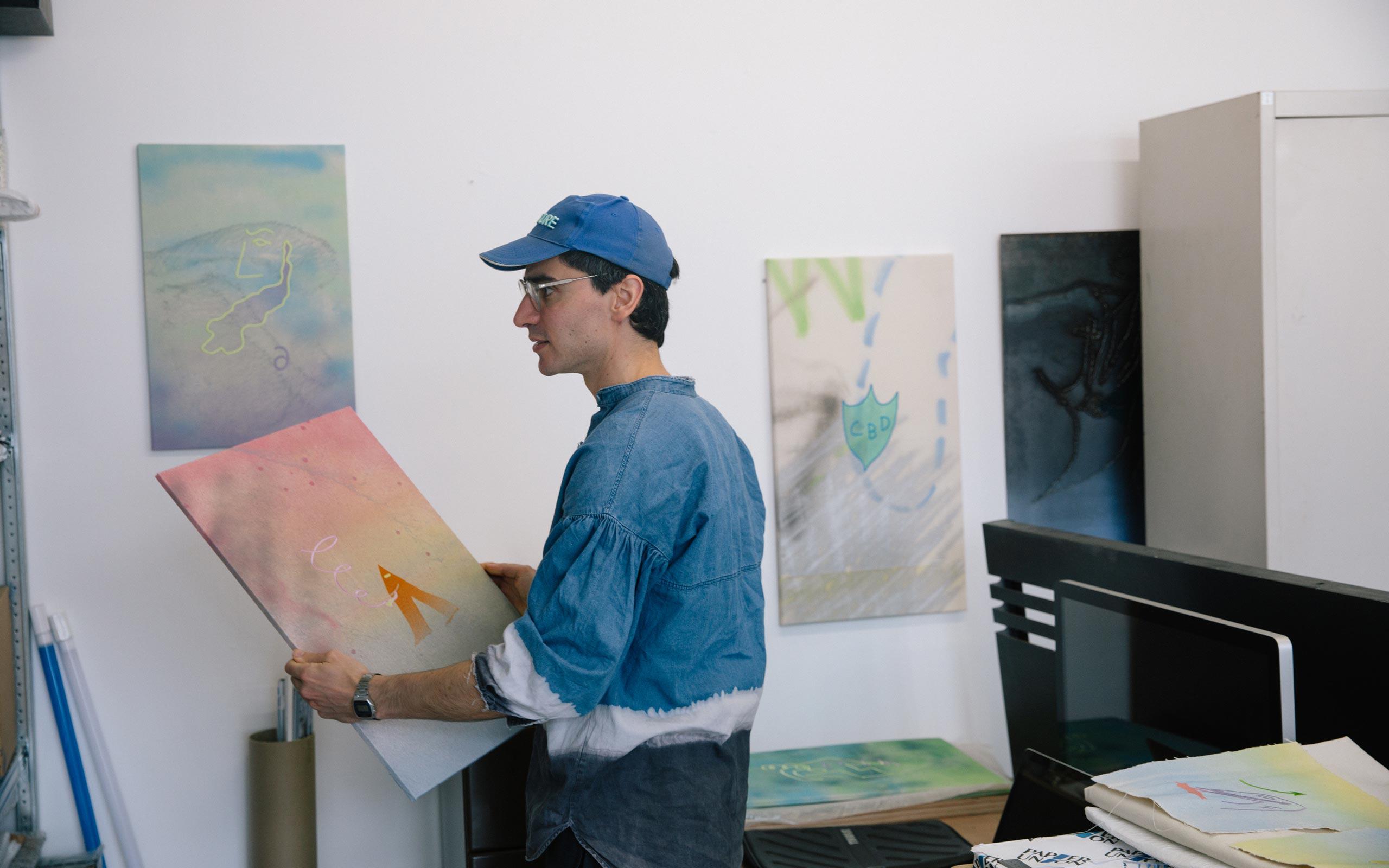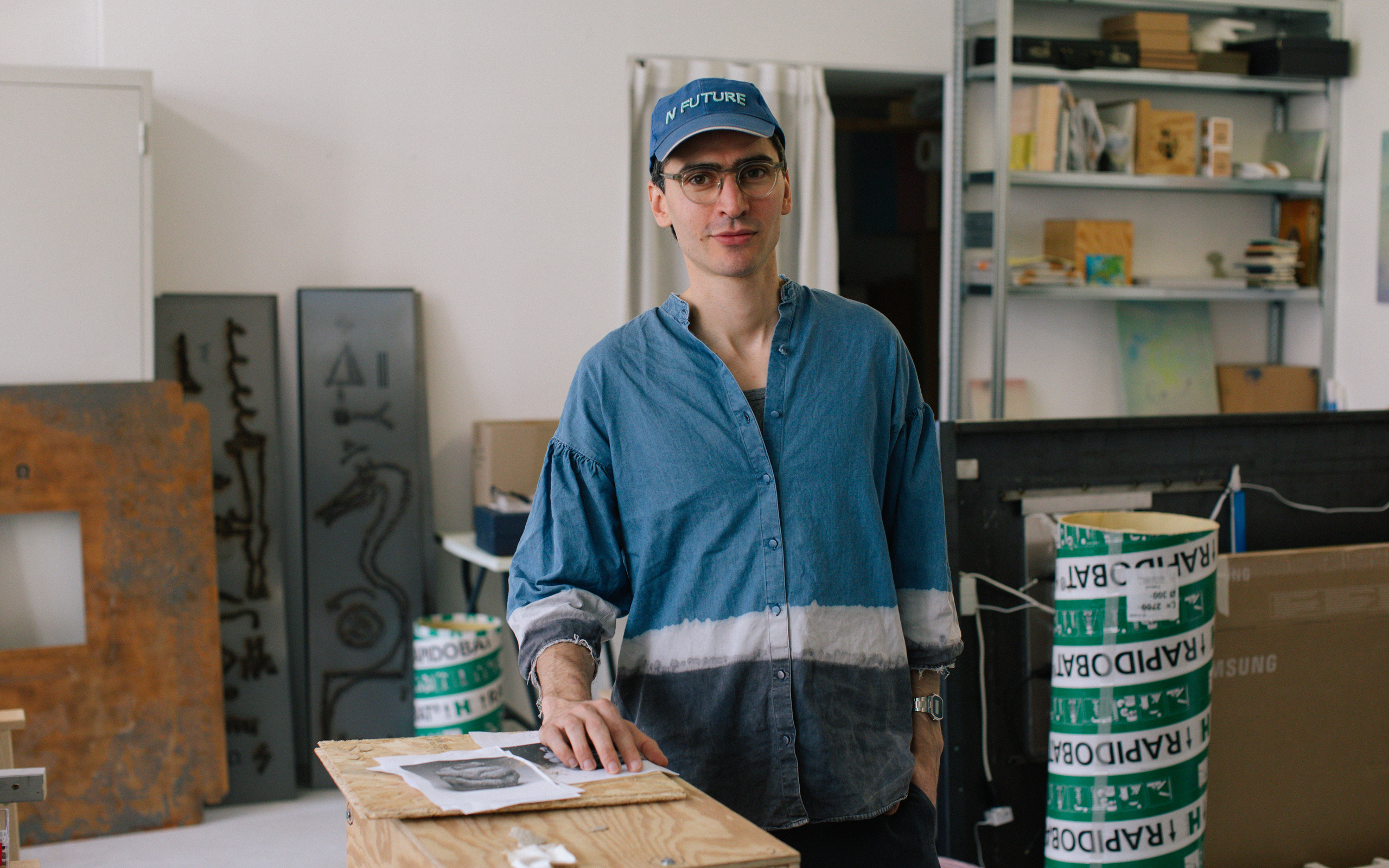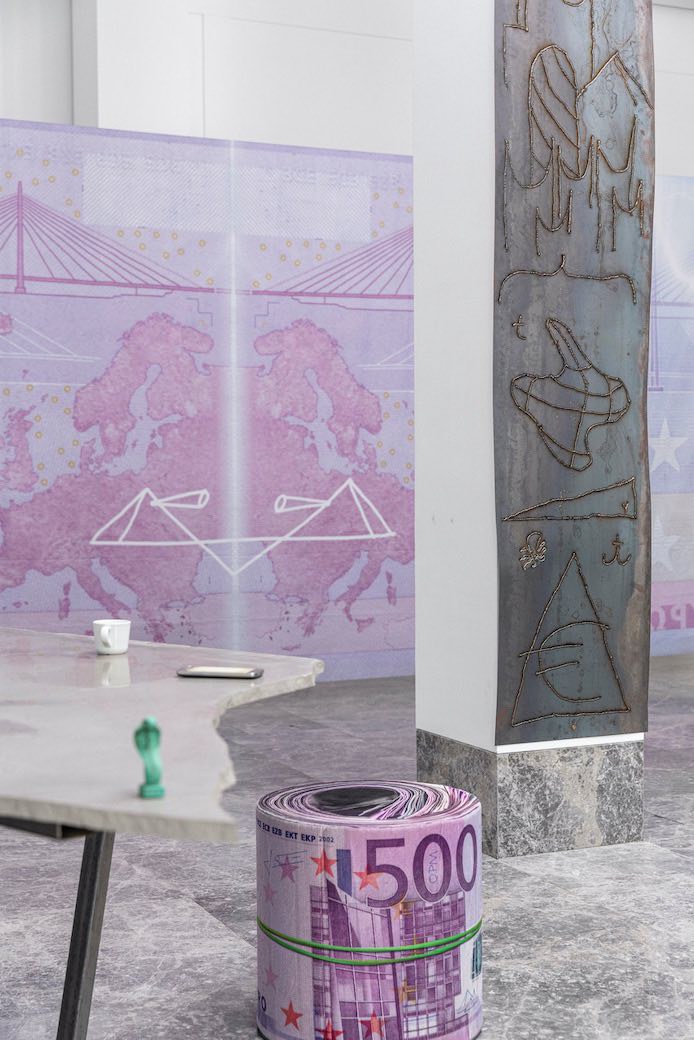 Mysterious logos, marble slabs, and digital worlds – Niko Abramidis &NE’s artistic work refers to themes such as power structures, future utopias, and contemporary urban development. Starting from sketches made in a notebook, he creates parallel universes including spatial installations reminiscent of office spaces that play with traditional symbolism of power, a fictious corporate identity, and the appearance of major cities. His drawings, objects, and digital prints reveal humor and diverse references, for example to science fiction, philosophy, and economic processes.