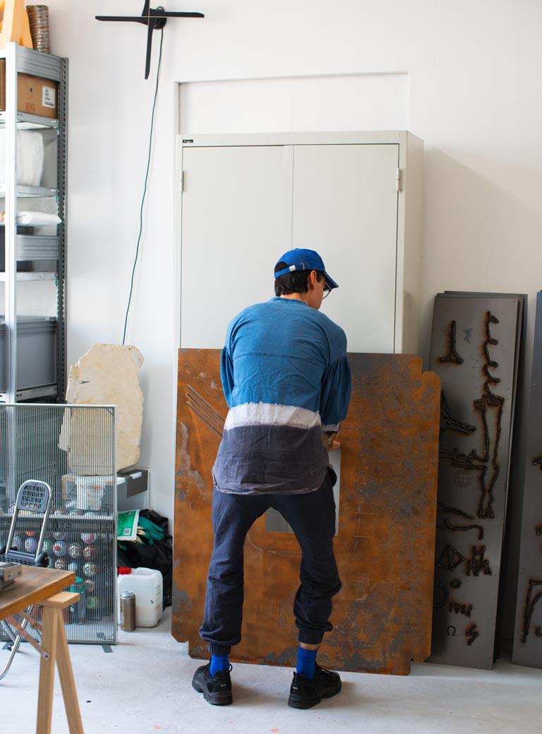 It was already great at the Academy of Fine Arts in Munich, where I started studying, with Markus Oehlen. It existed always a bit of a punk atmosphere there, where it was all about being able to do everything yourself, not limiting yourself or letting yourself be limited by external factors. That you work on your materials yourself, for example, that you use found materials, make your own clothes, and so on. And that’s how I started to develop my own corporate identity, with outfits and everything and try out everything myself in the workshop. In Munich I learned that as an artist you don’t just sit alone in the studio, but look around broadly, research and use new production methods, look at workshops and so on.