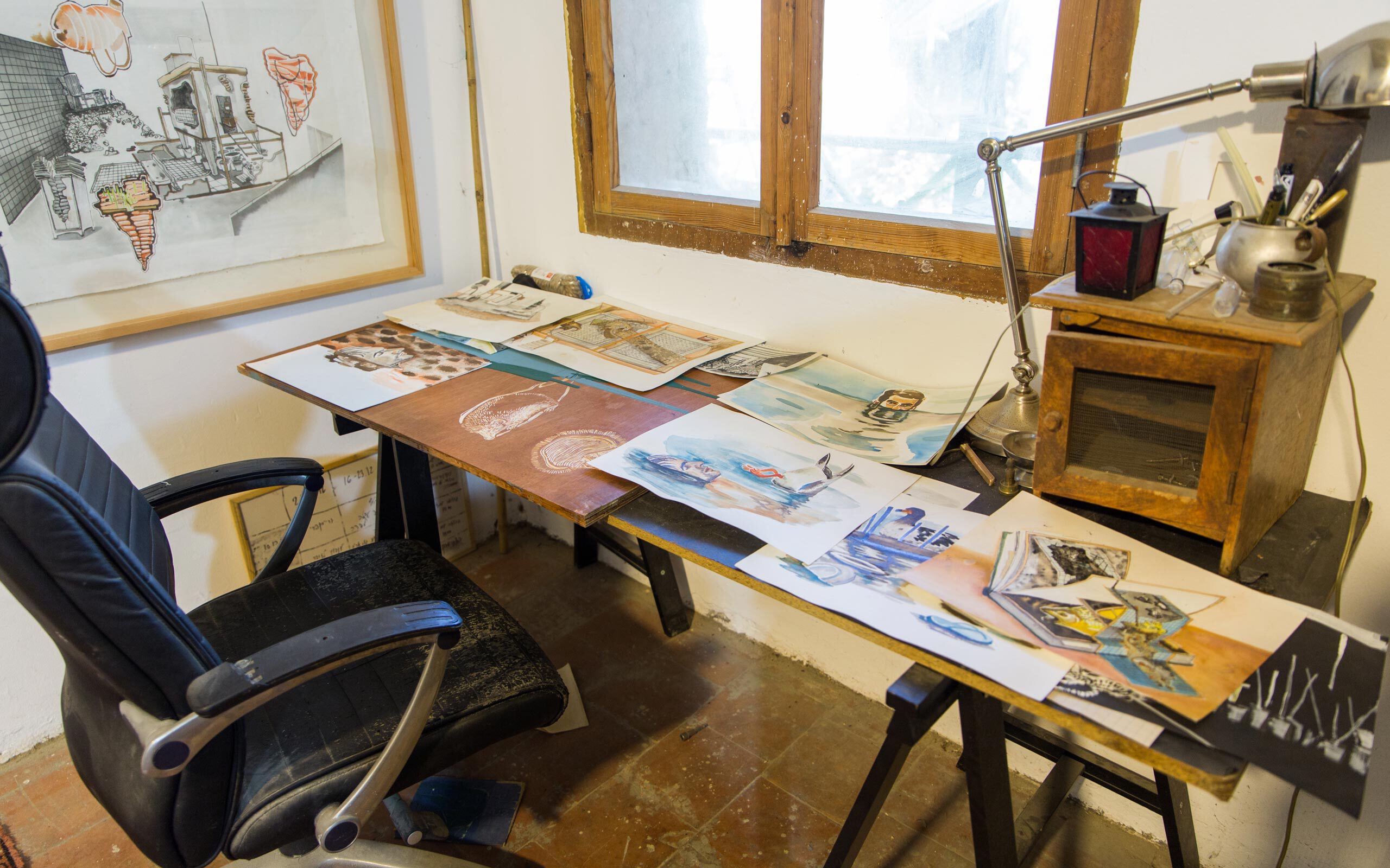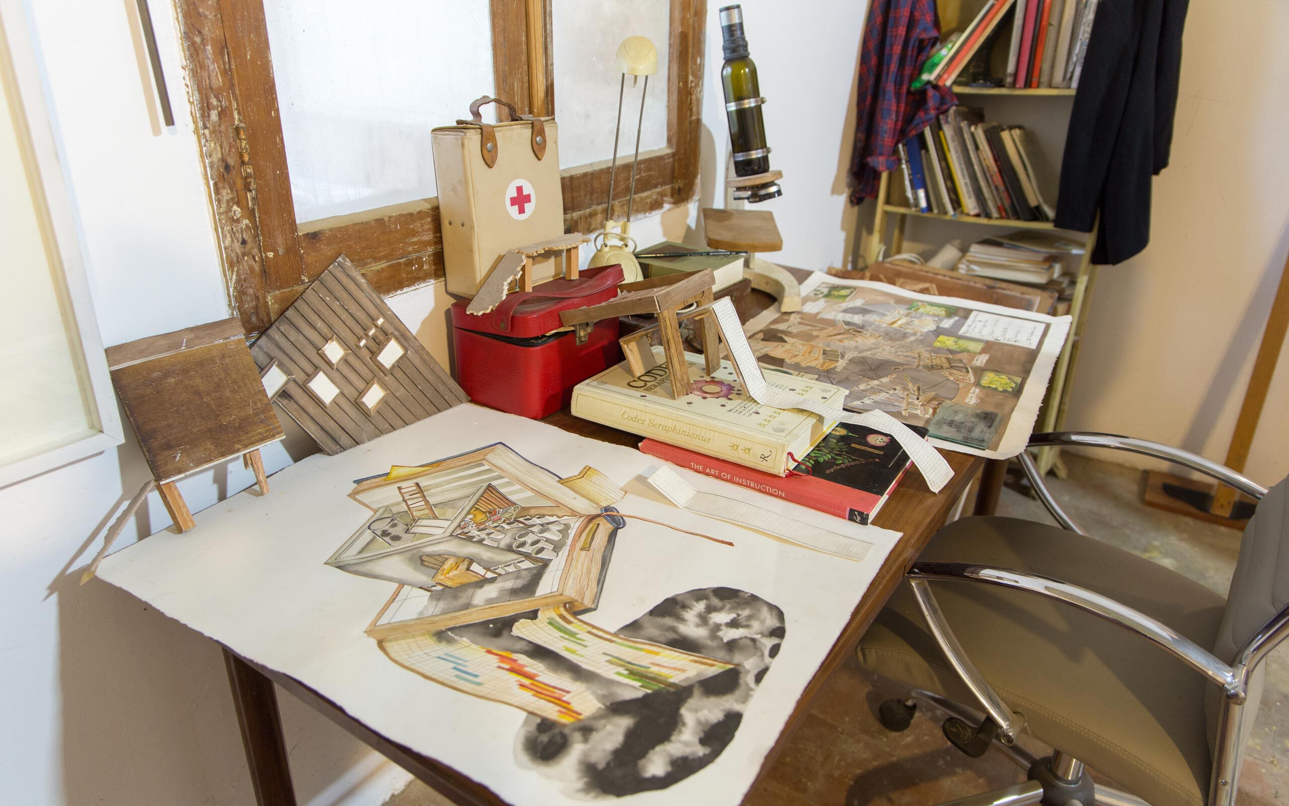 There are two spaces here: One is dedicated to drawing and painting, while the other is where I sculpt and do the hands-on work. I started working in this unique studio a bit before the coronavirus broke out, and I have two young children, so there have been long periods when I couldn’t really get here. When I do come here, the studio feels like a safe haven, some space beyond time. It is the place I always yearn to come back to. If you followed me every day, you would see me carrying loads of materials and installation components from the studio to my house and back. Sometimes I also work at home, during stolen moments. Currently, in addition to coming here in order to draw and sculpt, I am also shooting a film inside the studio. There are days when I come here with a whole crew of people, who are helping me simulate the rowing of a boat for an upcoming project. The studio has temporarily become part of a world that I construct. The line between reality and art has blurred a bit, but it seems right for my kind of work.