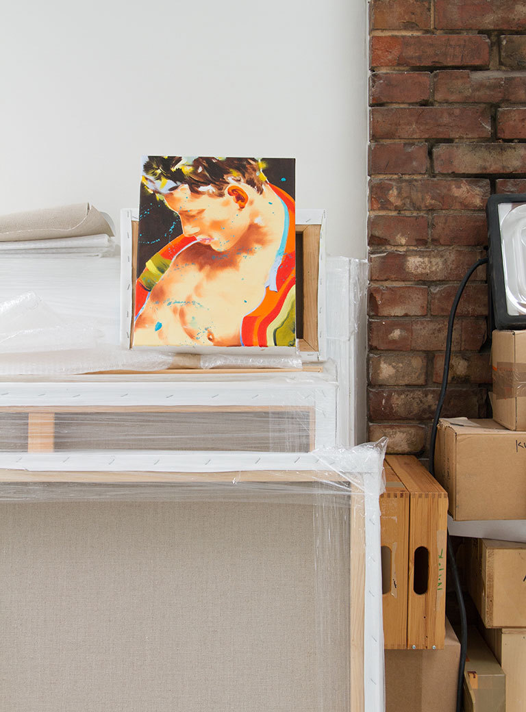 And regarding the boys I would like to say something. Some will ask “why does he paint boys so often?” Even if I were to paint boys until the end of my life, and never paint anything else, the “Boy meets Girl” stories, with which I have been bombarded for so many years, would never be cancelled out. These are love stories and an aesthetic that addresses only marginally the experience of a gay minority that exists throughout the whole world. And quite honestly, if I felt like painting super-gay pictures for the rest of my life – what the fuck should be the problem? I am also able to accept the culture of the societal majority.