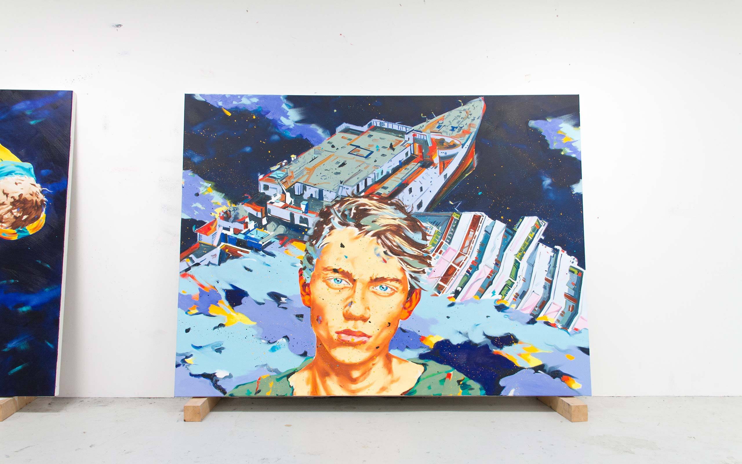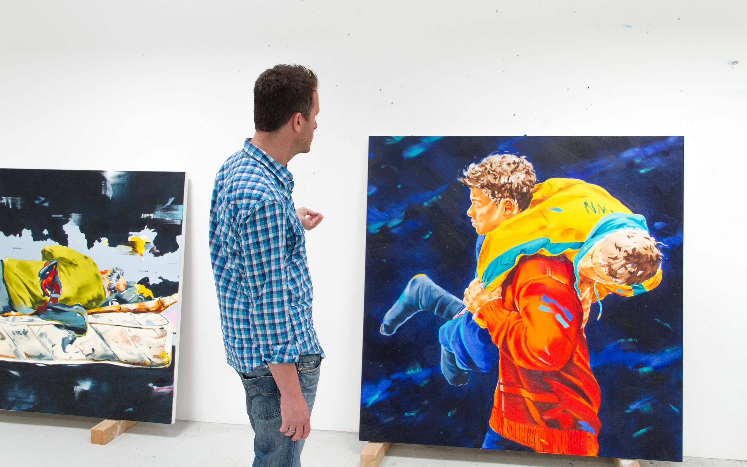 I have been captivated for a long time by the images of refugees, which I have seen with my own eyes, outside of the Lageso (Regional Office for Health and Social Affairs Berlin). With a little distance I then began to focus on the theme “escape” which led to several paintings and series, which I showed in São Paulo. It sounds at first absurd, but Brazil is a classic immigration country, escape is a omnipresent topic. I too have a personal connection for both of my parents were refugees.