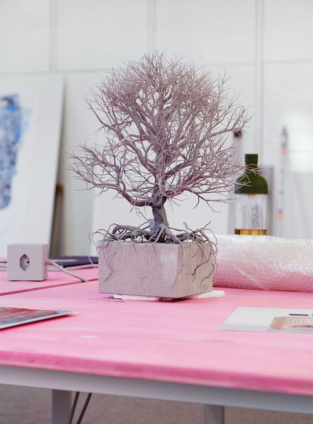 Swiss artist Pamela Rosenkranz combines biology, technology and culture into her work. Through sculptures, installations and paintings, she explores questions such as the conflict between scientific description and subjective experience, or the boundary between nature and artificiality. Rosenkranz exhibited at the Swiss Pavilion at the Venice Biennale in 2015 and at New York's High Line with a tree sculpture in 2023.