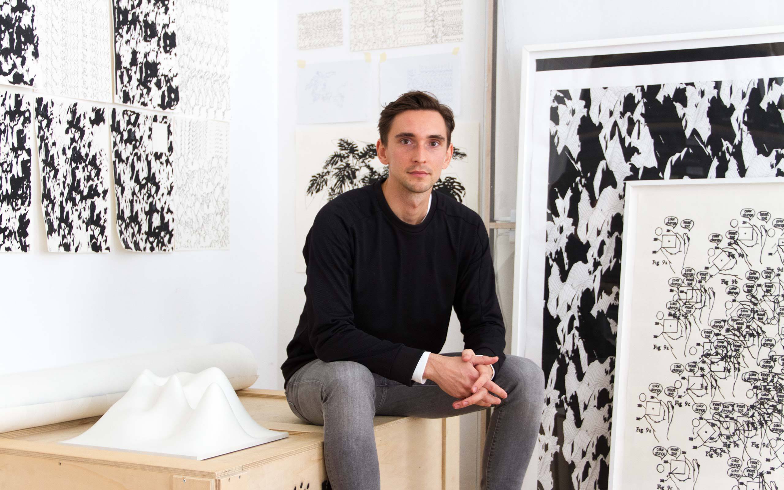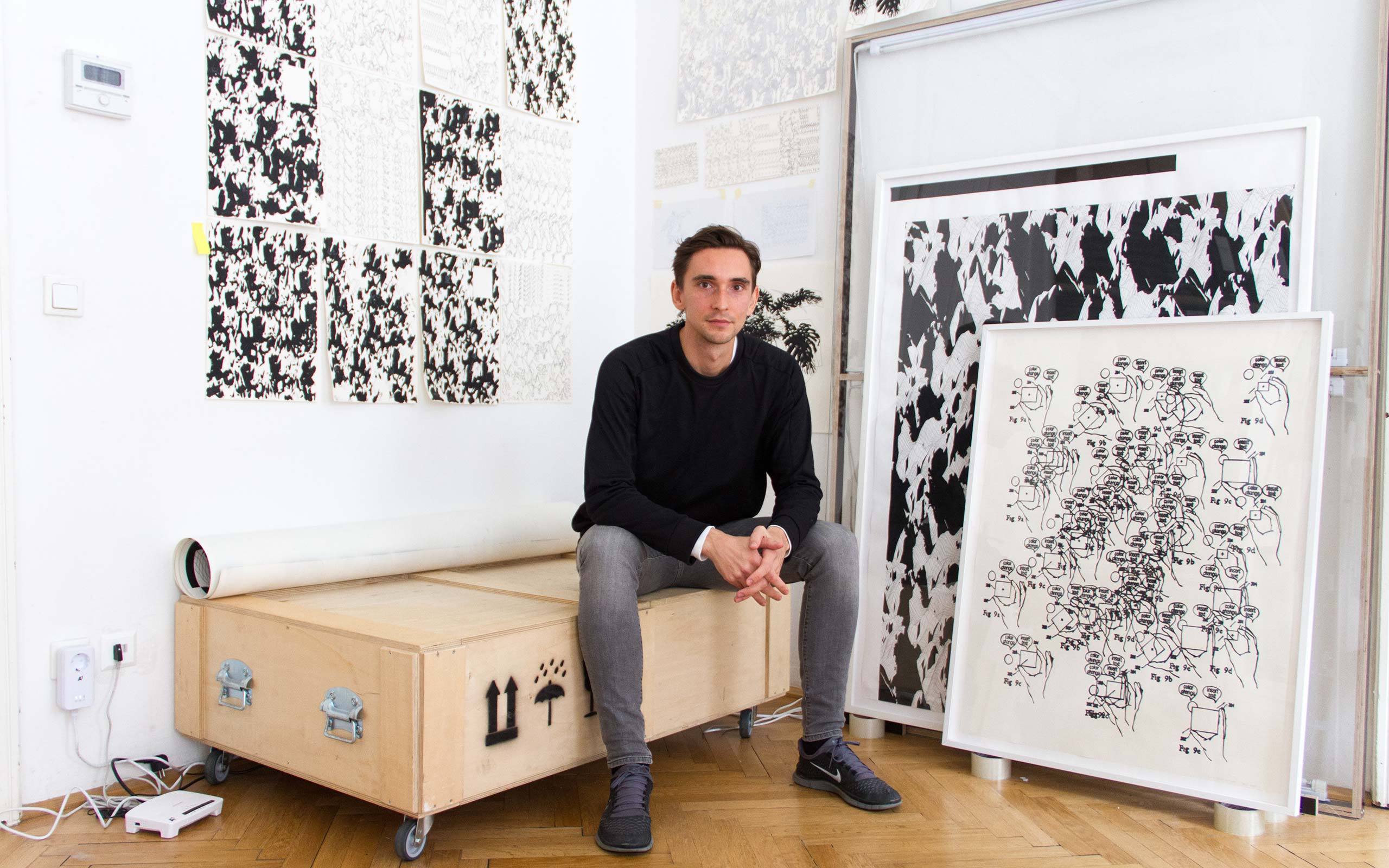 Peter Jellitsch’s conceptual drawings in black and white oscillate between the digital and analog world. The esthetics and lightness of his Data Drawings cover the fact that they are packed with numeric information, and, to the interested viewer, they unfold a narrative about the visualization and transformation of space and processes connected to our daily routine. We met Peter in his studio in Vienna’s Josefstadt district to talk with him among others about his first career as a cabinetmaker, the attraction of Pokemon Go, and about the US, to which Peter owes an early development of his artistic career.