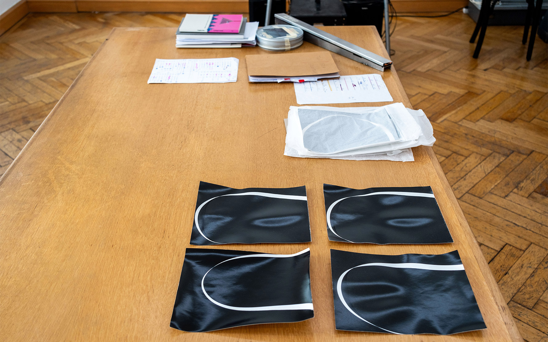 Always early and with lots of coffee. Often, I start with organizational things—emails, to-do lists. After a few hours, the artistic existence complains about how terribly boring it is to sit in front of the laptop, and demands tactile work. After a few days, you feel lonely and try to lure friends and collaborators into the studio; exchange must happen. Then again, only in quiet and with flight mode on the phone. Oh, and deadlines must be obediently met...