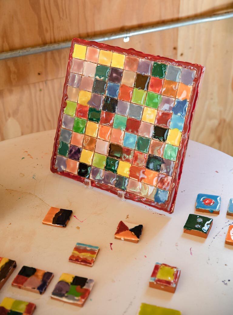 Well. It’s complicated – like so much around the pandemic. I have had a studio in New York City for more than 40 years, but I haven’t really been working there. These past 18 months, I have been splitting my time between this studio, where I mostly do drawings (although there is a kiln here) and Arcadia. I wouldn’t consider Arcadia my studio. It’s an artist’s residency and it’s very particular to a project that I’m working on. A couple of years ago, I received a phone call from Richard Torchia, the director of the gallery there, asking me if I would do a residency at Arcadia University. He and Gregg Moore, the head of the ceramics department had seen a show I had done in New York called The Potential of Women, which included about 130 ceramics and which got them very excited. I received some grants to support this work, and the idea is that what we produce in the residency will turn into the show. Because of COVID, the show was put off a year and it just grew. They have been very generous. It’s really more like collaboration with Gregg and his assistant Rachel Geisinger. As you can see in the corner of this studio, I have a small kiln and I was doing ceramics here; this residency really has brought the ceramics full front. Gregg has brought a very high level of expertise to the project – we have developed 100 new colors of glaze for this project, and of course there I have larger kilns and more facilities to work with.