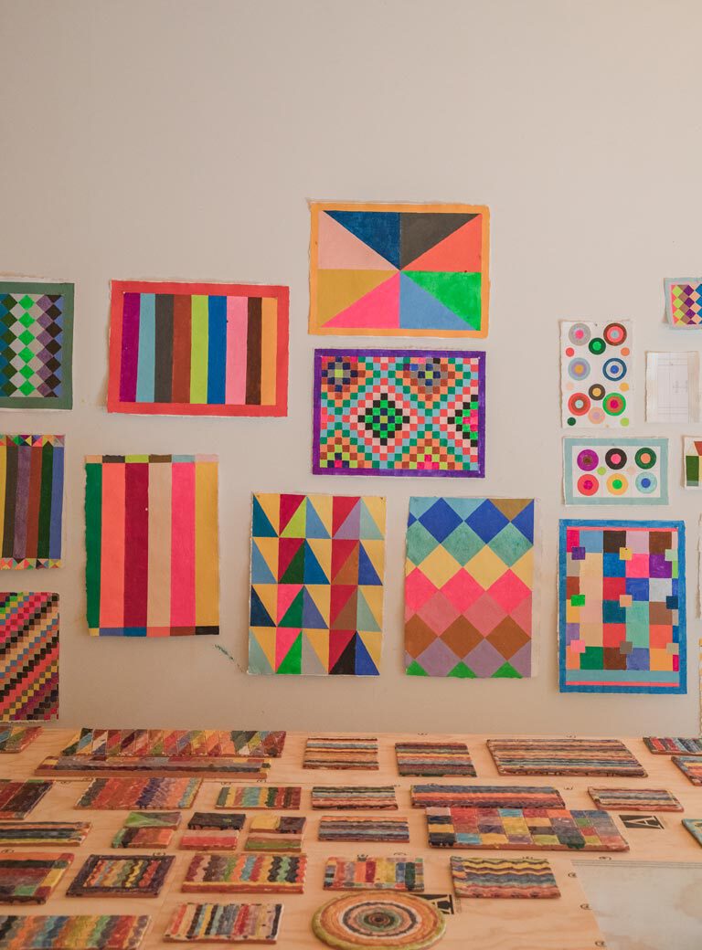 It will be squares arrayed on the floor in a loose grid pattern. Here in the model you can see the layout of the rooms. It’s a beautiful building by Jean Nouvel overlooking the lake. It’s going to be two rooms of fabrics and two rooms of ceramics, small ceramics on the floor. It will be a two-person show, including drawings by Josef Herzog, a Swiss artist, who is no longer living. All of these shows were originally scheduled for before the Corona pandemic, and they were all postponed. Now, all of a sudden, they are back on, rescheduled for an intensive six-week period this spring. The show in Tel Aviv is based on an older floor work Red Desert that Magasin IIII owns. So the show is Red Desert/Red Sea/Red Mountain, and it includes some newly fabricated rugs and ceramics. At the same time, I am working on a show at Arcadia that is based on the work of a Pennsylvania Dutch outsider artist named David Ellinger.