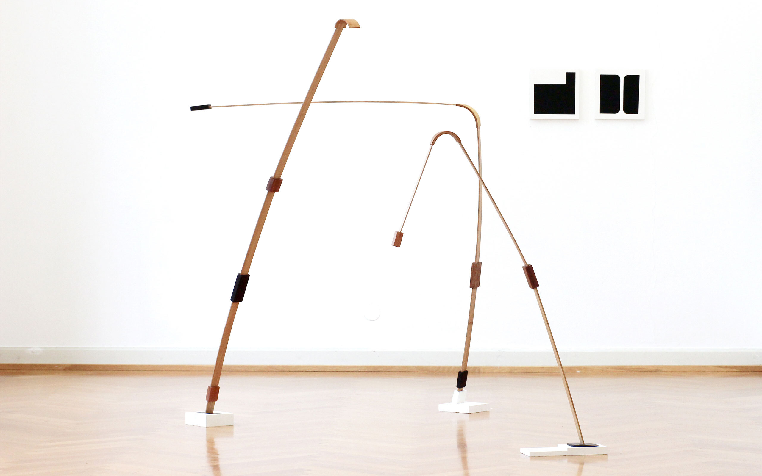 Working on this exhibition was a long and special process, because I worked on it together with Melanie and we were looking for juxtapositions and similarities. The title comes from a dictionary of rhymes and plays with the notion of comparison. Melanie and I deal with partly similar questions, even though we work very differently. We both question the boundaries between painting and sculpture and think about frames and pedestals for, as well as art itself. During our collaboration a new, own, and abstract language of and about sculpture has developed. In Melanie’s work, the horizontal and vertical planes are suspended. A connection between installation and sculpture occurs.