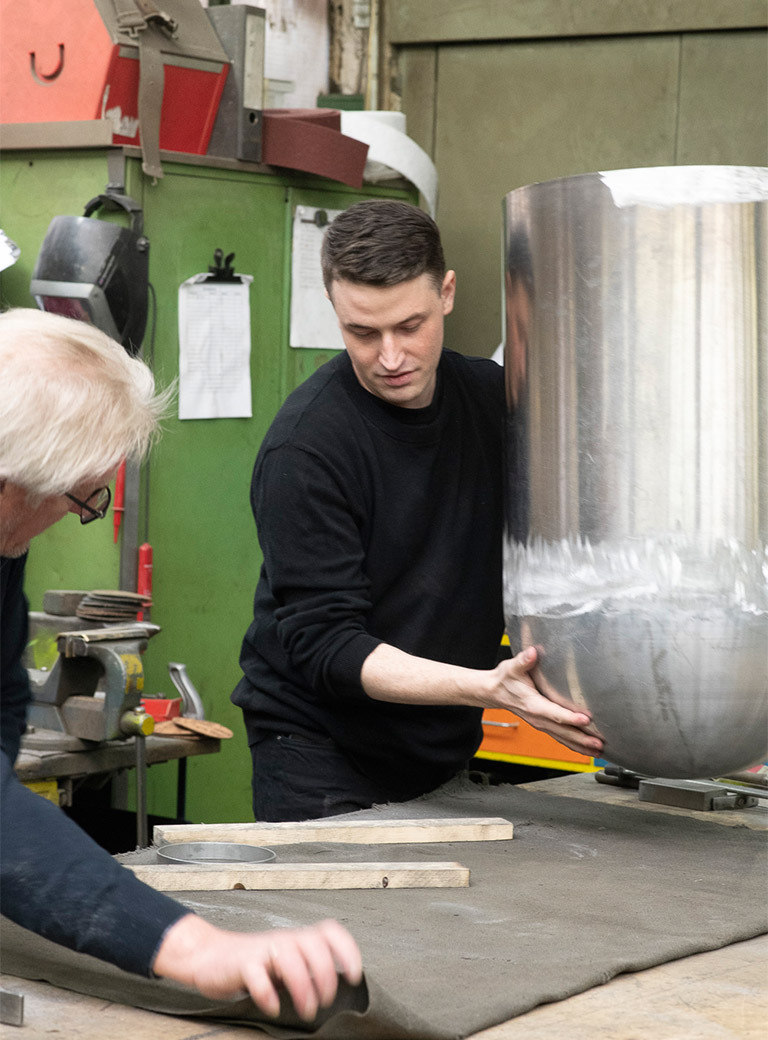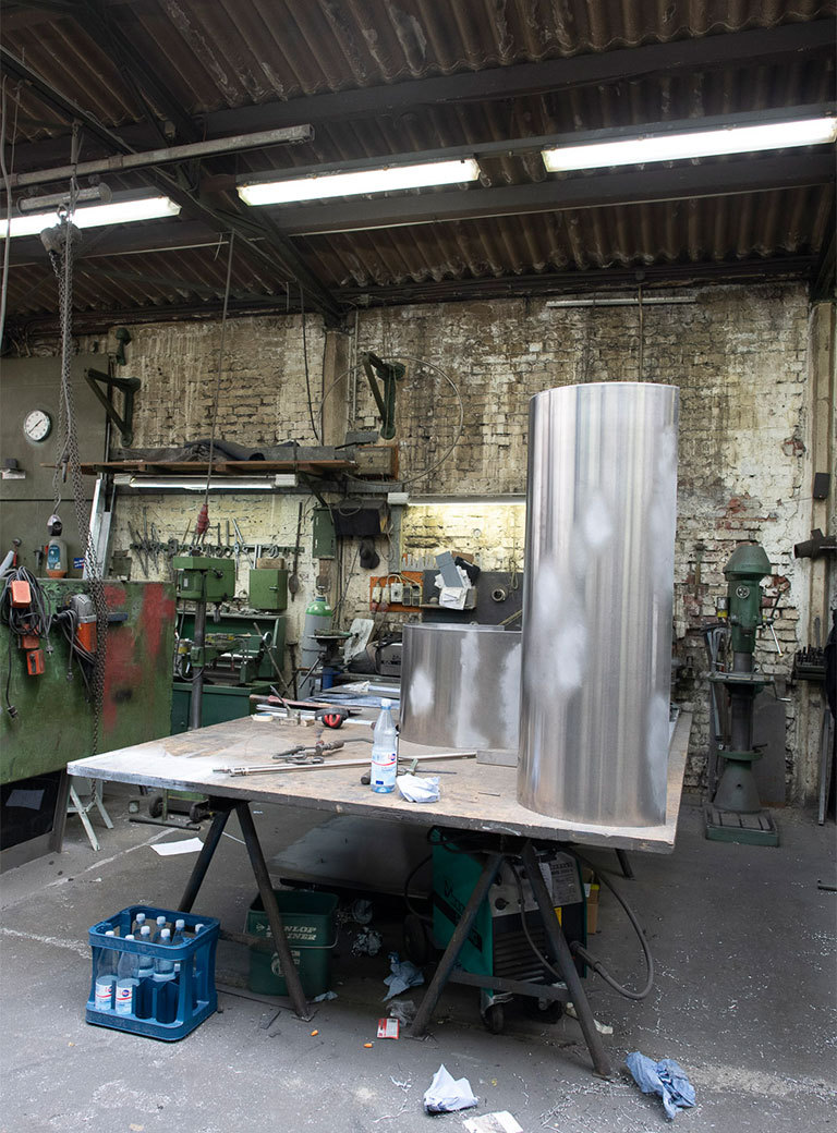 Each work is the result of the previous one and so I automatically immerse myself in certain materials that have as much fascination for me as steel, stainless steel, and aluminum and the prefabricated parts made from them. I'm interested in the fact that they are industrial materials and therefore already give certain forms. For example, aluminum sheets are only three meters in size. Of course you can think bigger, but then you have to weld. It's a bit like a plug-in box system.