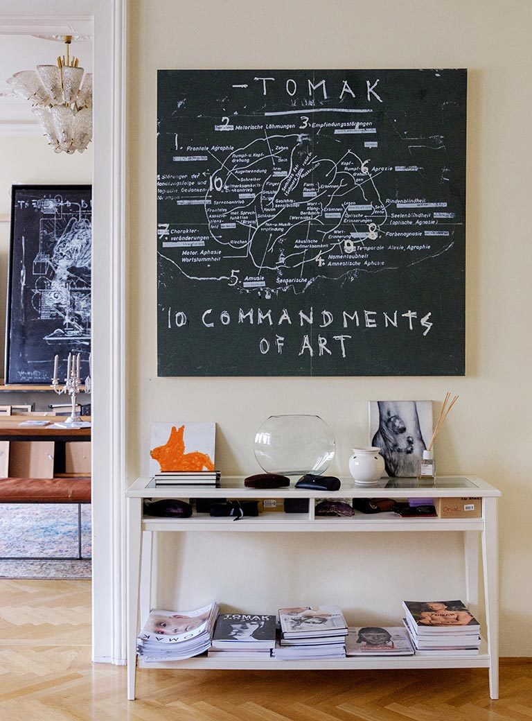 Generally, the big collectors confine the works they buy into storage. I have no influence over what a collector does with a piece. But I don’t think he’s allowed to draw or paint on it. Otherwise he can do anything with it. Which is good. The best thing I’ve ever seen was a Basquiat picture, 3.50 metres wide and about 2.50 meters tall that hung on the wall behind Donatella Versace’s bed. In front a baroque bed and left and right baroque bedside tables. It looked so cool! That’s what living with art should be like! I really liked that.