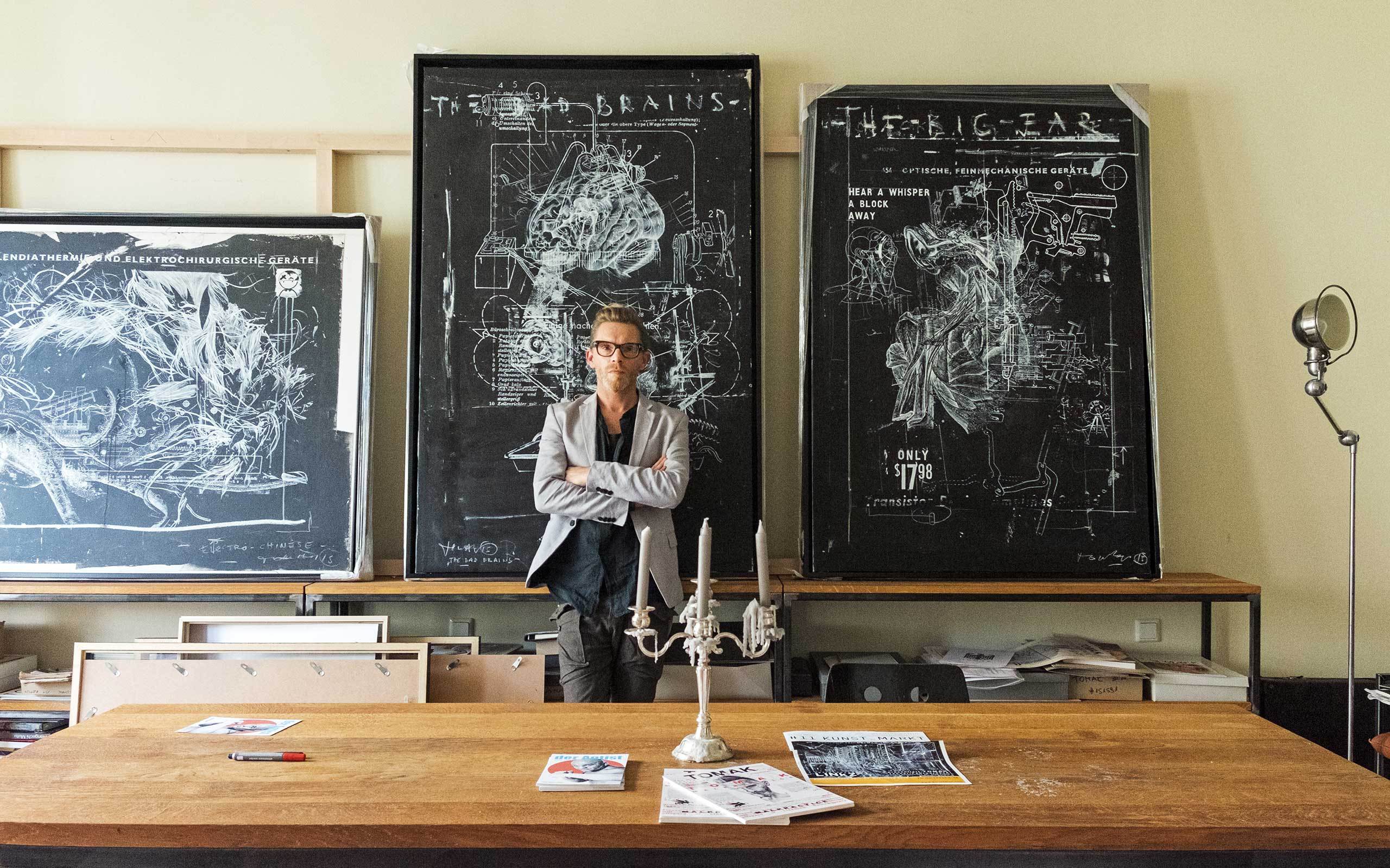 TOMAK is not just an artist – he is an artistic figure, a staged persona, and a brand. He is a challenge – in five letters. A pseudonym that polarizes, provokes and insists on being listened to. We met TOMAK in his apartment at Mariahilfer Strasse in Vienna’s 6th District and talked to him about his new project, THE ANTIST, his expectations of art, and about ”painting seven minutes”.