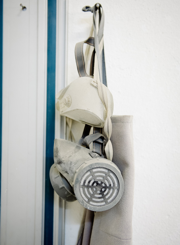 I don’t use any form of pedestal for my works, the parts stand directly on the floor, I want to avoid any sense of sublimity of the sculpture. If there were anything pedestal-like, it would necessarily be an integral part of the work, not something made afterwards to place the sculpture on. For me, concrete has an architectural reference: the exposed concrete that I cast and, in part, the terrazzo surfaces that I sand. You always work in the negative, but with steel you always work in the positive, and with concrete the real work is in the making of the mold.