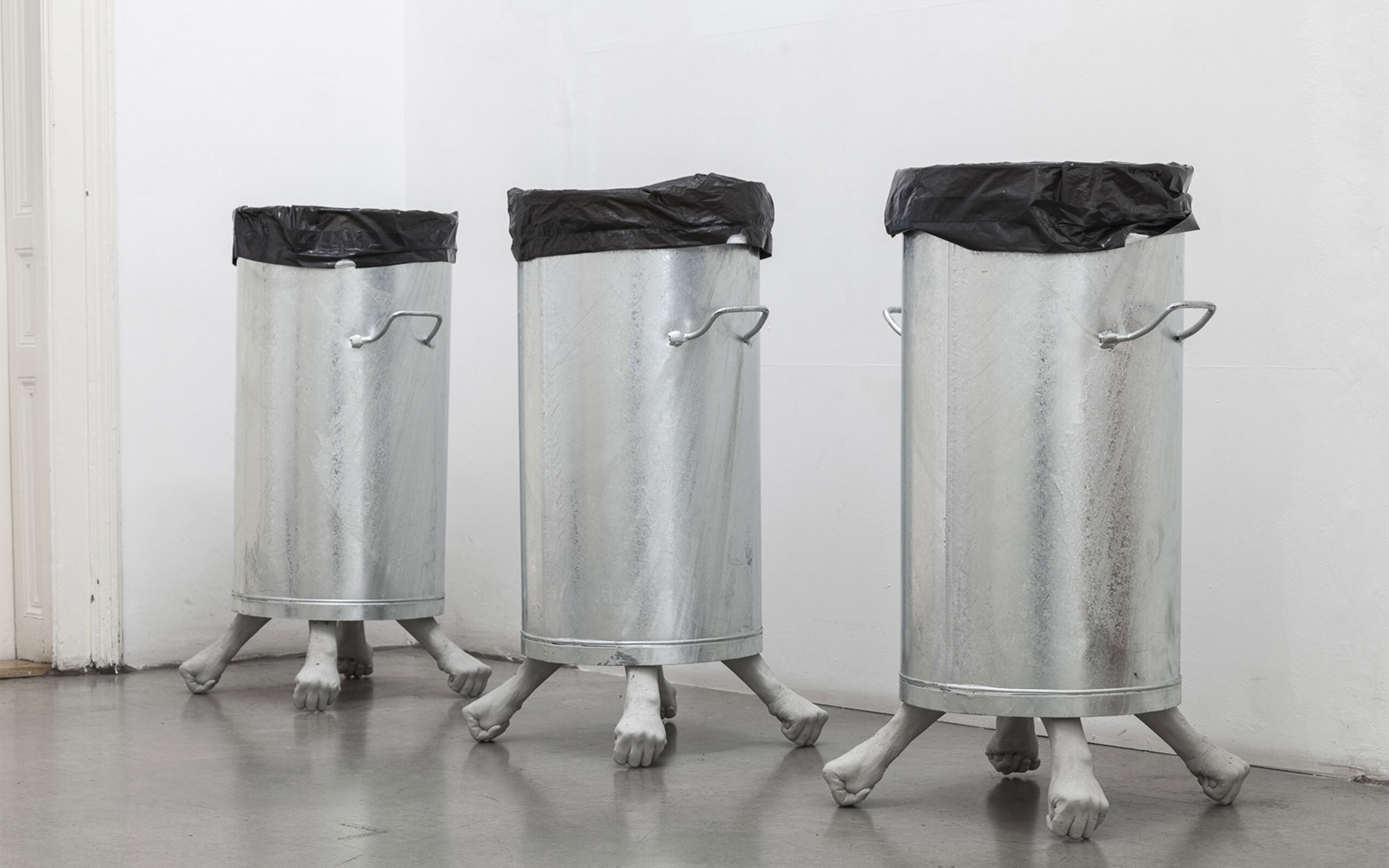 The fists are cast hands, casts of my own hands, and have been appearing in fragments in the series fisting since 2012. Actually, the hands are the only specific reference to bodies in my sculptures.