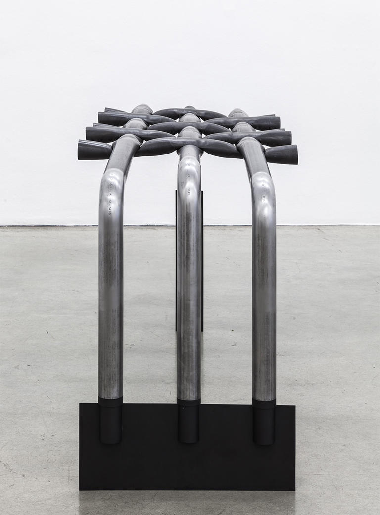 In the case of steel I feel that, unlike wood for example, it is a material that is very precise. For example, if you go shopping in the steel trade and order a 60 mm pipe with a 2 mm wall, you can trust what you receive as a starting point. In the case of wood you request a certain measurement, it is supposed to be 10 cm, you measure and it is 12 cm. The precise starting point, which I can work with, is extremely good in the case of steel. In terms of processing, with steel you have something to work with: it takes a lot of effort to give the material a form. It involves a certain amount of force, the slowness of working process suits my own pace. I have this 60 mm form pipe, which is then forged, crushed, stretched, and somehow pushed to the limits of the material – to the extent possible for the material.